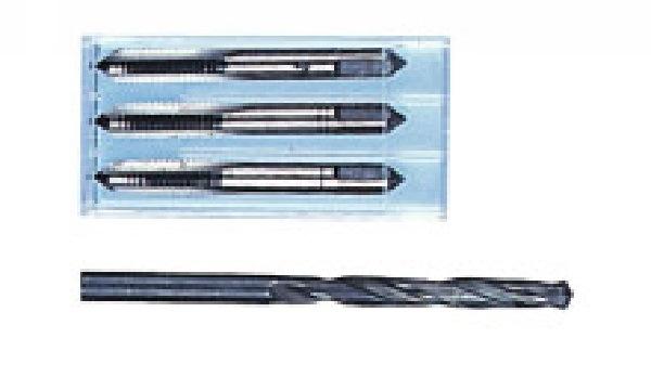 Taraud à main. Pas : 150/100, diamètre : 10 mm. Acier au chrome.Jeu 3 tarauds (ébaucheur, intermédiaire, finisseur) + 1 forêt HSS.