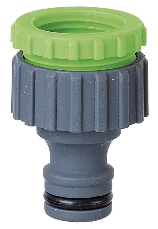 Taraudage 3/4 - 20/27 + réduction 1/2 - 15/21Sélection de raccords nécessaires pour le montage ou la réparation d'une ligne d'irrigation en tuyau d'arrosage 15 et 19 mm. Corps bi-matière Soft Touch .