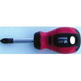 Tournevis boule. Manche bi-matière, excellente prise en main. Longueur : 38 mm. Lame chrome molybdène, chromé mat, embout bruni magnétique.