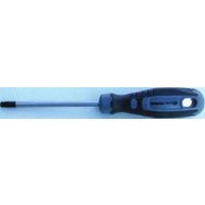 Tournevis TX. Manche bi-matière, excellente prise en main. Lame chrome molybdène, chromé mat, embout bruni magnétique.