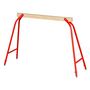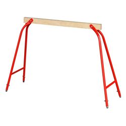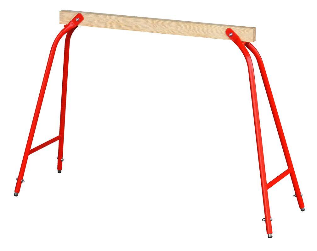 Tréteau pliant. Traverse bois dimensions : 800 x 50 x 30 mm Piétement acier tubulaire Ø, 20 mm avec patins plastiques.4 réglages de hauteur de 71 à 89 cm. Peinture époxy. Charge maxi : 300 kg (la paire).