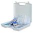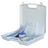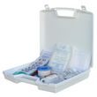 Trousse de premier secours pour véhicules légers contenant: 1 paire de ciseaux bouts ronds, 1 pince à écharde, 1 rouleau de sparadrap 5m x 2cm, 4 bandes extensibles: 2 en 3m x 5cm et 2 en 3m x 7cm, 5 compresses stériles 30 x 30cm, 9 pansements 6 x 2cm, 2 pansements 6 x 4cm, 3 tampons contre-coups, 3