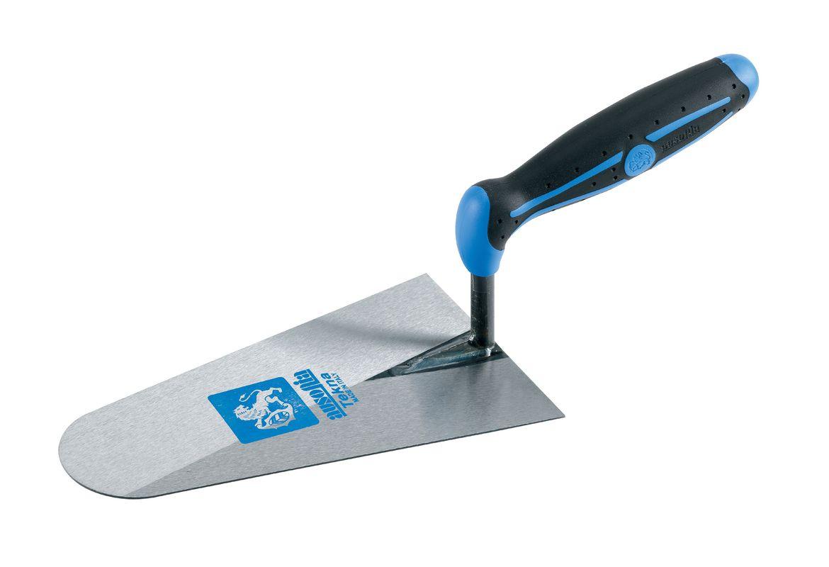 Truelle ronde PRO - 22 cm / manche bi-matièreLame en acier haute qualité protégée par un vernis écologique antirouille. Assemblage poignée/lame robuste et flexible par soudure micro-fusion. Poignée bois verni avec viroles acier ou ergonomique avec grip anti-dérapant.