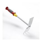 Petite serfouette trois dents a revetement grip anti-dérapant LNK - Spécial Massifs et, Rocailles - Sa panne droite désherbe, ses dents pointues ameublissent en douceur la terre et la rendent plus souple - Angle d'attaque optimal - Butées a l'avant et a l'arriere de la poignée - Acier galvanisé - oeillet d'accrochage.