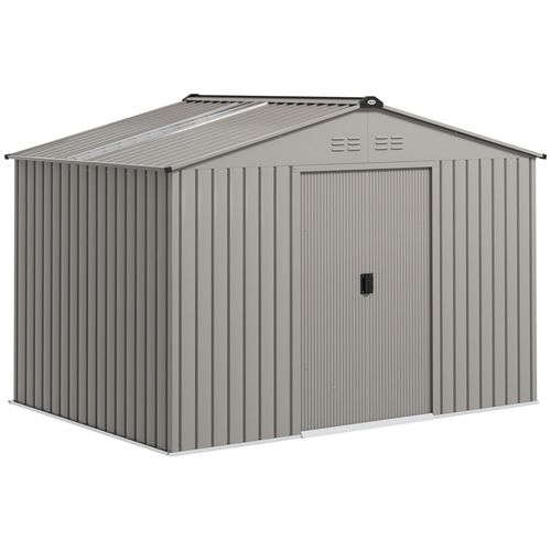 Abri de jardin 5,4 m² - cabanon double porte coulissante - fondation incluse - 277 x 195 x 192 cm - tôle d'acier ondulée gris