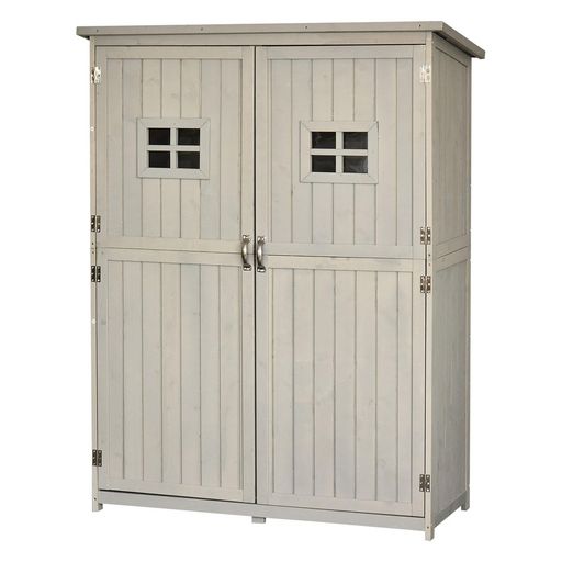 Abri de jardin armoire de jardin remise pour outils sur pied dim. 128L x 50l x 164H cm 2 étagères 2 portes 2 fenêtres toit bitumé étanche bois massif sapin pré-huilé gris