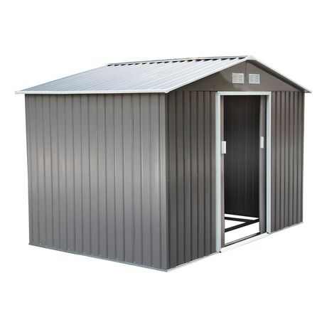 Abri de jardin - remise pour outils - cabanon double porte coulissante - fondation incluse - dim. 277L x 191l x 192H cm - tôle d'acier ondulée grise