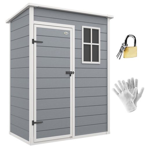 Abri de jardin - remise pour outils - cabanon porte verrouillable, fenêtre - dim. 151L x 92l x 193H cm - alu PP gris blanc