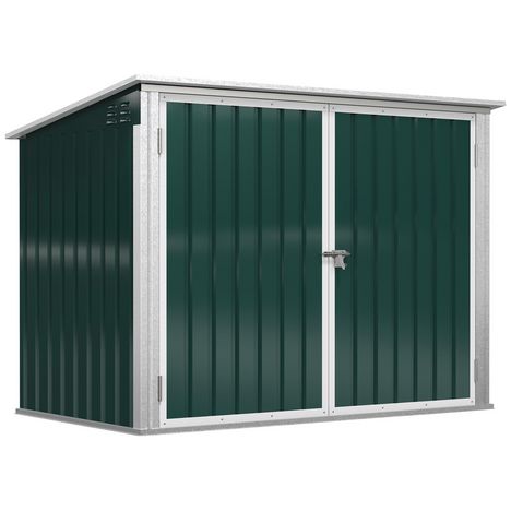 Abri de poubelle jardin - cache poubelle - 2 portes verrouillables, toit ouvrant - tôle d'acier blanc vert
