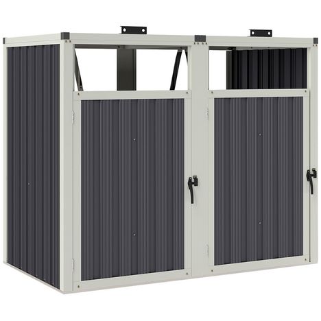 Optimisez votre jardin avec l'abri pour poubelle extérieur Outsunny pour un bac de 240L. Design ventilé, portes verrouillables, couvercles à 180° pour dépôt facile, et cadre en acier galvanisé résistant aux intempéries. Une solution pour un espace propre et ordonné.Caractéristiques :- L'abri pour po