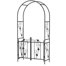 Arche de jardin avec portillon treillis style fer forgé feuilles vigne acier thermolaqué noir