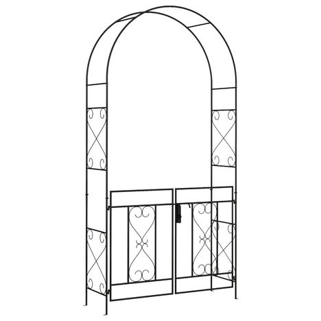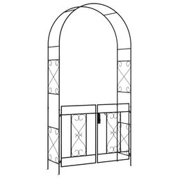 Cette magnifique arche à rosiers avec portillon style fer forgé en métal époxy décorera parfaitement votre jardin ou terrasse grâce à ses belles lignes harmonieuses. De quoi en profiter pleinement pendant les beaux-jours ! Elle dispose de 2 portes permettant le passage entre deux espaces. Vous pourrez faire grimper de jolies plantes sur l'arche.