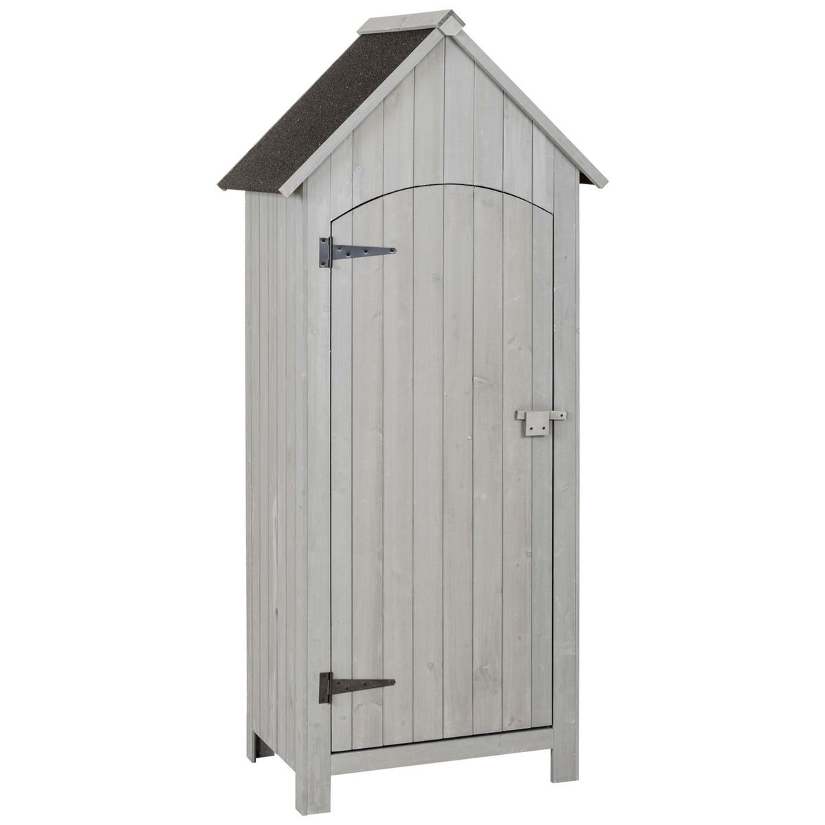 Armoire abri de jardin remise pour outils 3 étagères porte loquet toit pente bitumé dim. 77L x 54l x 179H cm bois sapin pré-huilé gris