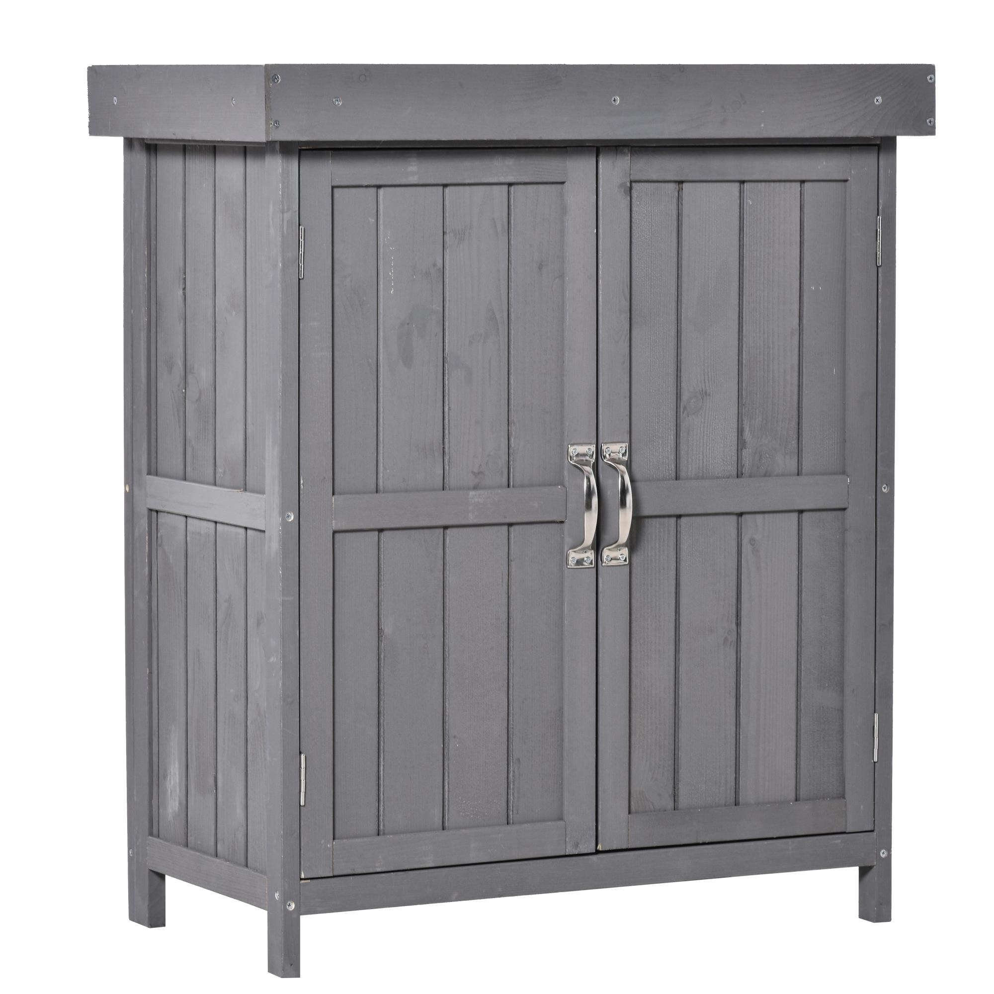 Armoire de jardin sur pied double porte étagère et toit bitumé relevable dim. 74L x 43l x 88H cm bois sapin gris