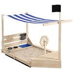 Ce superbe bac à sable bateau de pirate en bois permettra à votre enfant de façonner tous les châteaux de ses rêves mais également de jouer à des jeux d'imitation comme la cuisine. Équipé d'un voile d'ombrage, d'un coffre rangement et d'un gouvernail, vous pourrez protéger vos enfants des rayons du