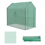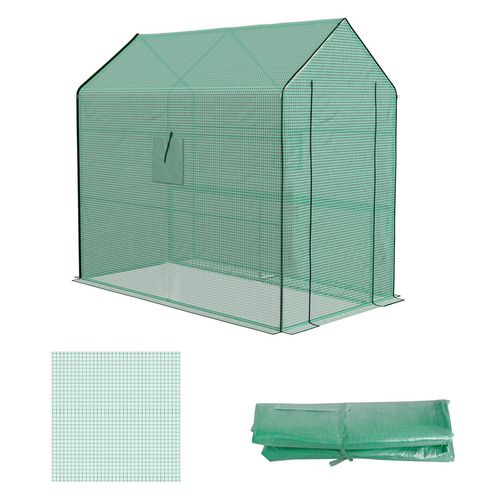 Bâche de remplacement serre de jardin dim. 140L x 213l x 190H cm - 2 fenêtres, porte zippée enroulable - PE anti-UV imperméable vert