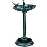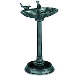 - Ce bain d'oiseaux comprend un bassin en forme de coquillage avec deux statues d'oiseaux