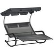 Savourez un après-midi parfait avec le bain de soleil de patio Outsunny, idéal pour deux. Robuste avec cadre en acier et maille respirante, il offre auvents résistants à l'eau et aux UV pour protection solaire. Facile à déplacer grâce à deux roues.Caractéristiques :- Les protecteurs antidérapants su
