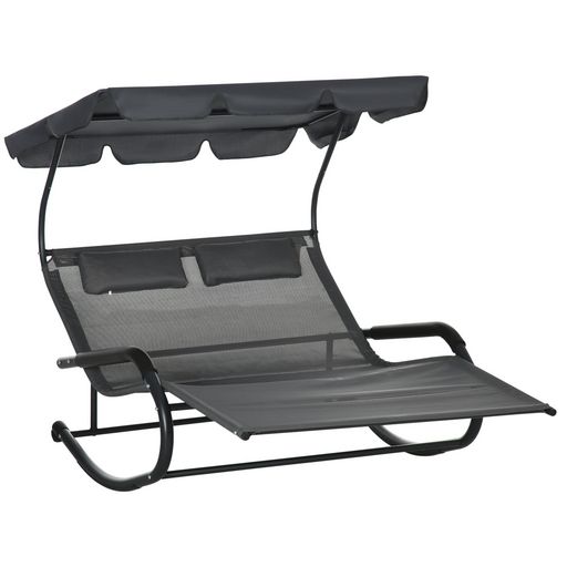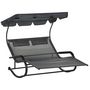 Bain de soleil 2 places à bascule design - auvent, accoudoirs, butées, roulettes - acier textilène tissu anthracite