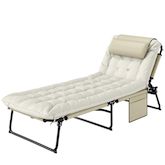 Bain de soleil pliable - dossier inclinable 4 positions - tétière, matelas épais - beige