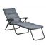 Bain de soleil pliable transat inclinable 6 positions grand confort avec matelas + accoudoirs acier polyester gris