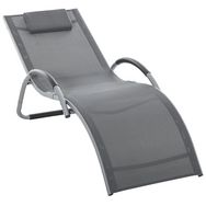 Bain de soleil transat design contemporain avec appui-tête grand confort léger aluminium textilène 160 x 60 x 65 cm gris