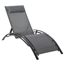 Bain de soleil transat design contemporain inclinable multi-positions tétière amovible incluse alu textilène gris