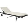 Bain de soleil transat inclinable 2 roues - épais matelas intégré blanc cassé - acier résine tressée noir