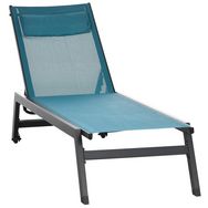 Bain de soleil transat inclinable 5 positions - tétière, 2 roulettes - alu. textilène bleu