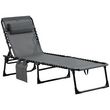 Bain de soleil transat pliable avec poignée - dossier inclinable multi-positions, pochette, tétière - acier époxy noir lacets élastiques textilène gris