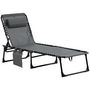 Ce joli bain de soleil grand confort vous permettra de profiter pleinement du soleil dans votre jardin, sur votre terrasse ou au bord de votre piscine ! Pliable, doté d'un dossier inclinable multi-positions, d'une pochette de rangement et d'une surface en textilène avec lacets élastiques et tétière,