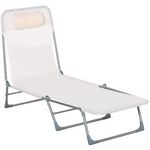 Bain de soleil transat pliable dossier réglable 5 positions acier teslin crème
