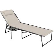 Découvrez le confort avec ce bain de soleil pliable Outsunny. Ajustez le dossier sur 5 angles. Structure en acier revêtu de poudre, assise en tissu avec cordons élastiques et oreiller pour un soutien optimal. Inclut table et poche latérales. Facile à transporter avec des poignées pour profiter du soleil ou de l'ombre.