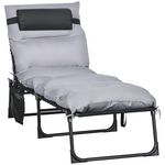 Bain de soleil transat pliable inclinable avec poignée, pochette rangement et matelas grand confort gris