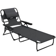 Bain de soleil transat pliable inclinable - coussins, espace tête - acier noir polyester antracite