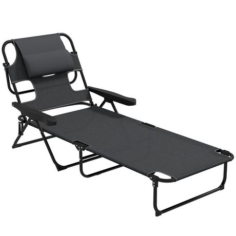 Cette chaise longue pliable d'Outsunny est idéale pour se prélasser au soleil, dans le jardin, sur la plage ou en voyage. Avec un cadre en acier et un tissu perméable à l'air de haute qualité. Elle dispose d'un dossier inclinable à 4 positions, d'un trou pour la tête et de deux trous pour les bras,
