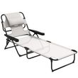Cette chaise longue pliable Outsunny est parfaite pour se détendre au soleil, au jardin, à la plage ou en voyage. Avec son cadre en acier et tissu respirant, elle offre un dossier inclinable à 4 positions, un trou pour la tête et deux pour les bras, ainsi qu'un coussin d'appui-tête pour un confort o