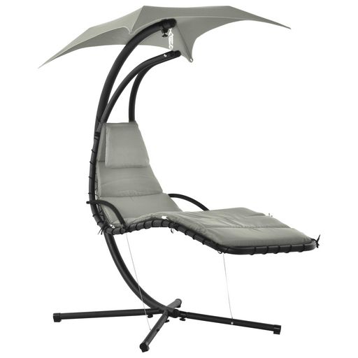 Bain de soleil transat suspendu avec pare-soleil et matelas design contemporain 190L x 115l x 190H cm acier polyester gris noir