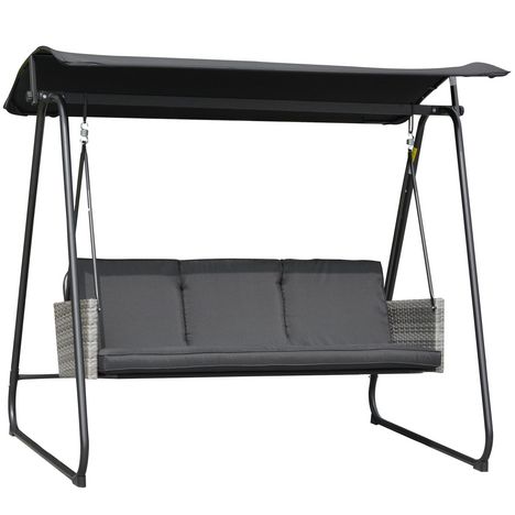 Balancelle de jardin 3 places auvent inclinaison réglable coussins assise et dossier résine tressée grise acier époxy polyester noir