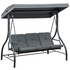 Balancelle de jardin 3 places convertible matelas fourni gris métal noir