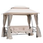 Balancelle de jardin 3 places convertible style colonial grand confort 2 coussins + matelas + moustiquaires inclus noir beige