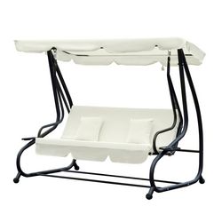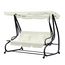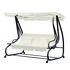Balancelle de jardin 3 places convertible toit inclinaison réglable 2 tablettes support acier époxy gris polyester crème