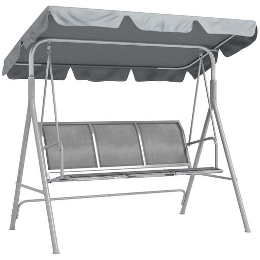Balancelle de jardin 3 places grand confort toit imperméabilisé inclinaison réglable assise et dossier ergonomique acier textilène gris clair