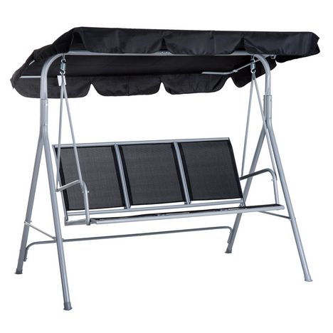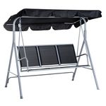 Balancelle de jardin 3 places grand confort toit imperméabilisé inclinaison réglable assise et dossier ergonomique acier textilène noir
