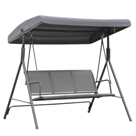 Balancelle de jardin 3 places grand confort toit inclinaison réglable assise et dossier ergonomique acier textilène gris