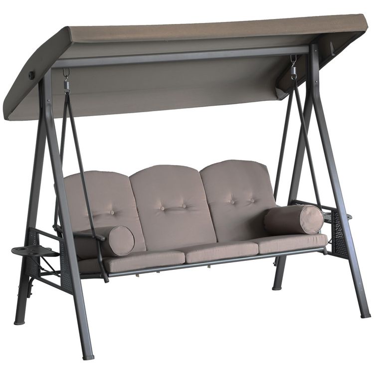 Balancelle de jardin 3 places grand confort toit inclinaison réglable coussins plateaux rétractables polyester filé marron