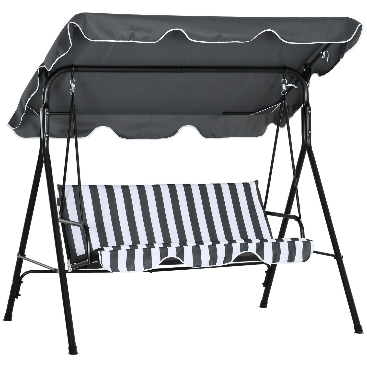 Balancelle de jardin 3 places toit réglable acier polyester blanc gris rayé