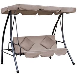 Balancelle de jardin convertible 3 places grand confort inclinaison toit réglable matelas fourni 2L x 1,25l x 1,7H m métal polyester noir et beige