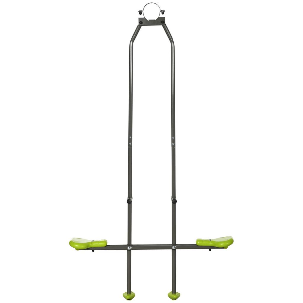 Balançoire agrès face à face enfant 3 à 6 ans - selles larges, guidon, repose-pied - gris vert