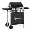 Barbecue gaz 2 brûleurs 2,8kW avec couvercle - grille, récupérateur graisse, 2 tablettes latérales, 2 roues - gris noir